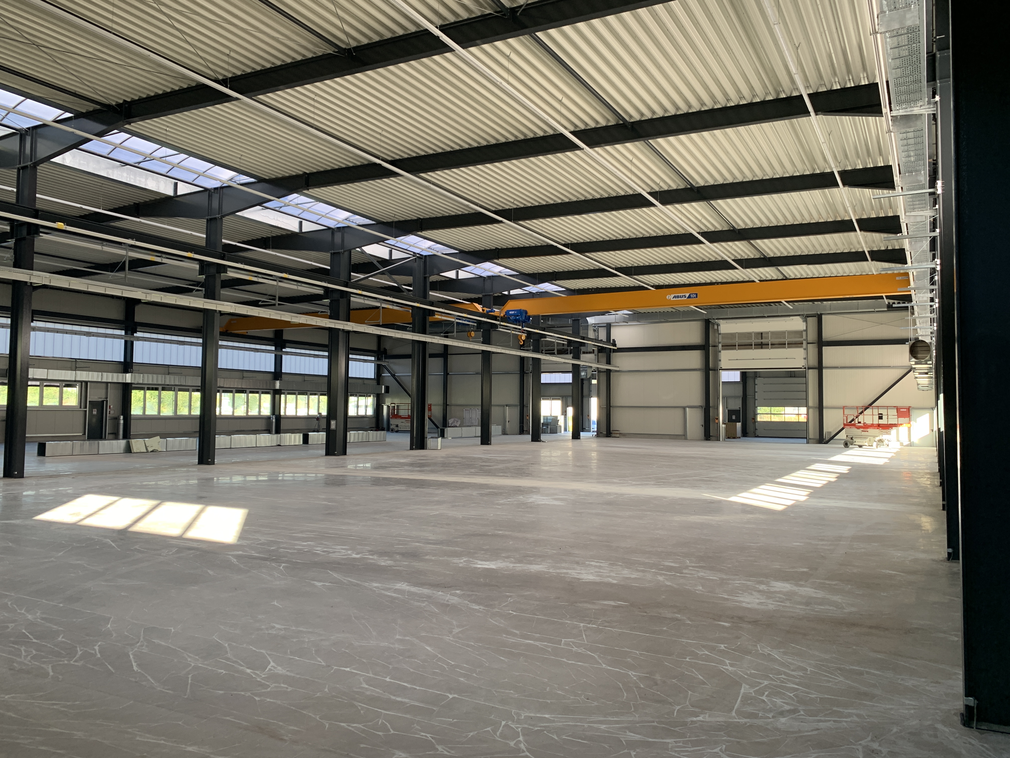 In der Außenanlage wurden die Parkplätze gepflastert und Bordsteine angebracht sowie die Zufahrten zum Produktionsgebäude asphaltiert. Auf dem Dach wird zudem zeitnah eine Photovoltaikanlage installiert.