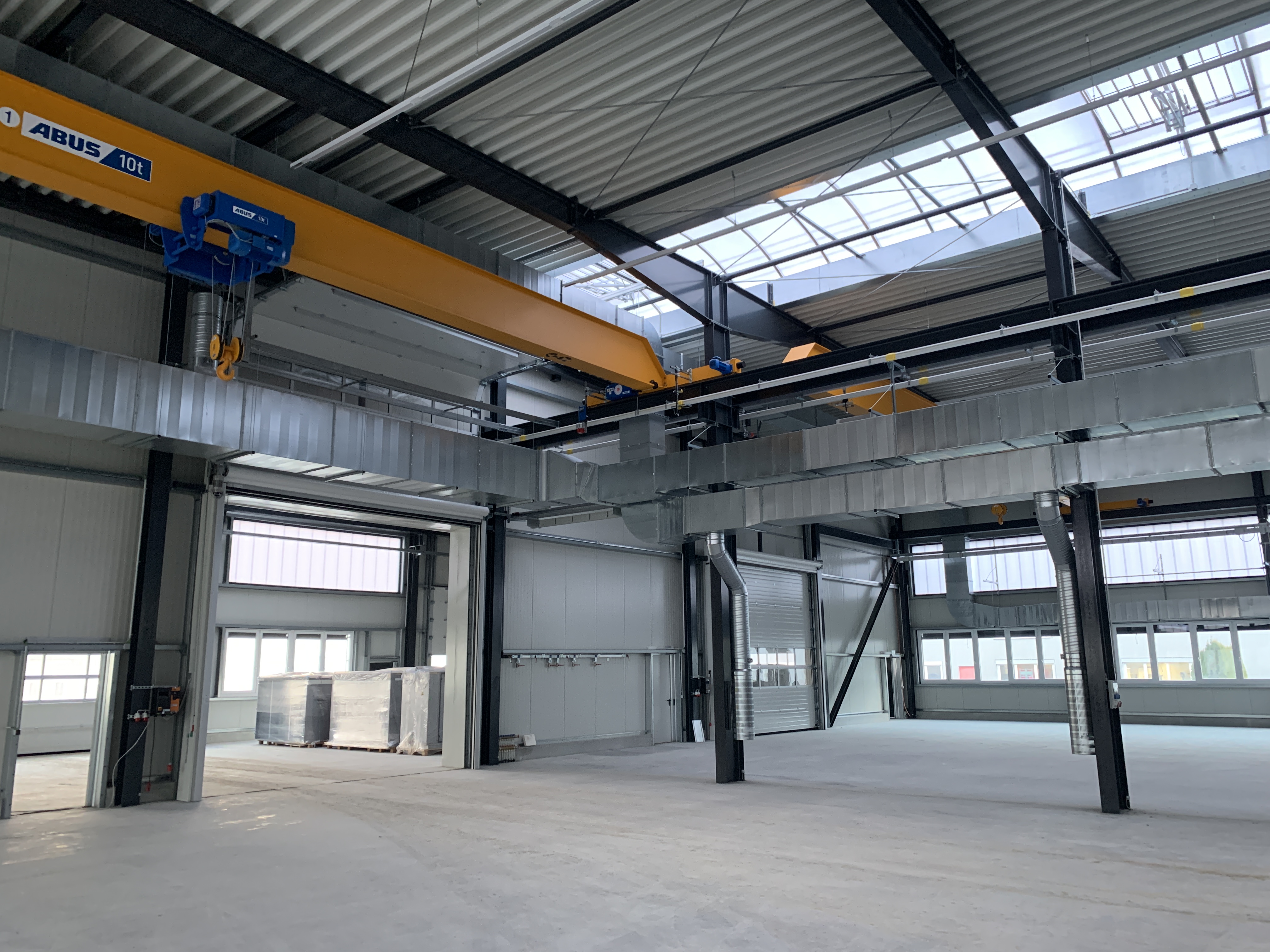 Outside, the parking spaces have been paved and curbs installed, and the access roads to the production building have been asphalted. A photovoltaic system is also planned on the roof, which will be installed in the coming days.